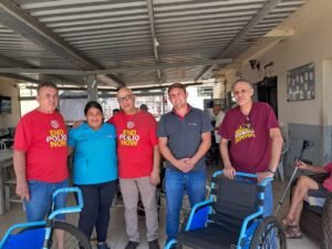 Blumenau/SC – No dia 17/10/2025, o Rotary Club de Blumenau-Oeste do Distrito 4652 de Rotary Internacional, realizou uma emocionante entrega de cadeiras de rodas à Associação Casa São Simeão, uma instituição local dedicada a A Associação Casa São Simeão é uma instituição dedicada ao acolhimento e cuidado de idosos, oferecendo um ambiente seguro, acolhedor e humanizado.