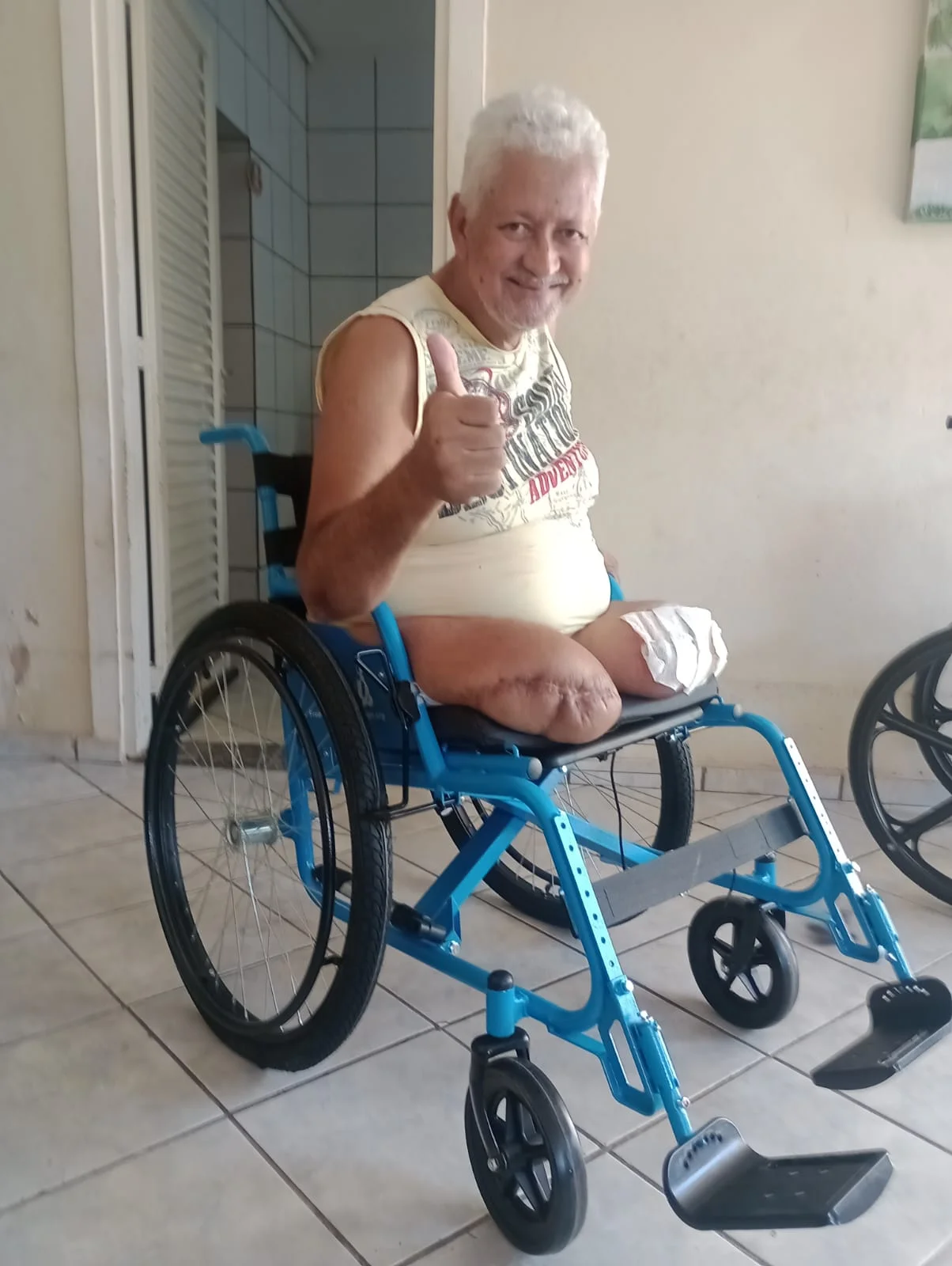 A necessidade de uma cadeira de rodas acompanhou Osvaldo Rodrigues Miguel nos últimos 5 anos. Devido a Entupimento da artéria femoral. Iniciou com a perna esquerda, fez tratamento mas não resolveu e necrosou. A direita aconteceu o mesmo mas necrosou mais rápido., Osvaldo Rodrigues Miguel perdeu a capacidade de andar, o que limitou suas atividades e sua interação com o mundo ao seu redor. No entanto, com a chegada da cadeira de rodas da Free Wheelchair Mission, Osvaldo Rodrigues Miguel tem a chance de recuperar sua independência e redescobrir a alegria de viver plenamente.