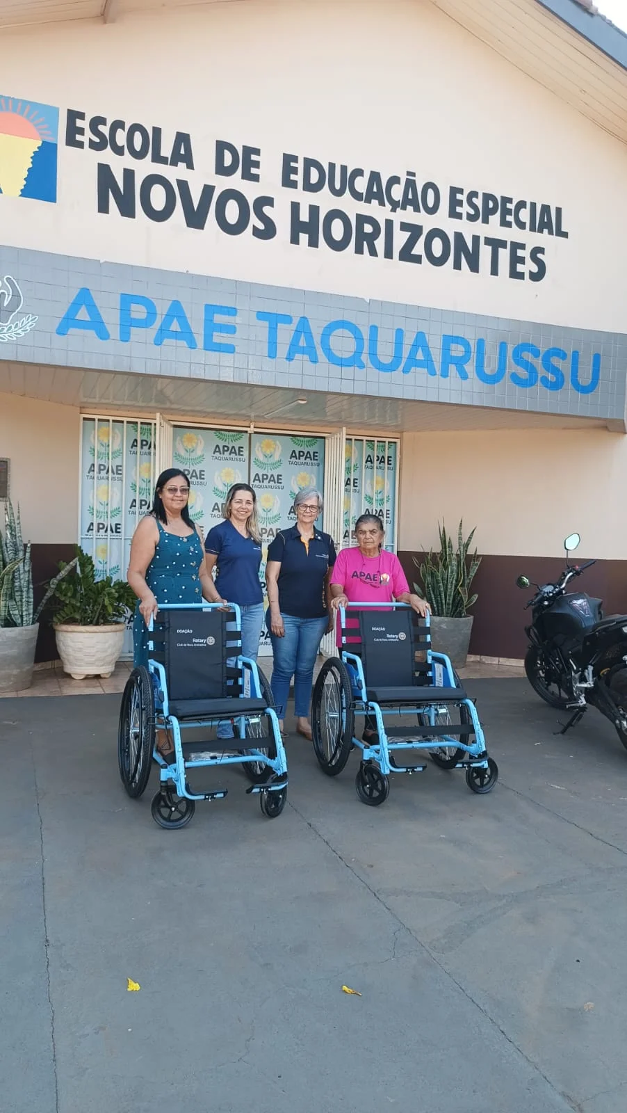 A APAE Associacao de Pais e Amigos dos EXcepcionais de Taquarussu é uma referência na cidade de Nova Andradina, atendendo atualmente a atende 30 alunos diariamente pessoas em situação de vulnerabilidade. Com a adição das cadeiras de rodas doadas pelo Rotary Club de Nova Andradina, a instituição poderá oferecer um suporte ainda mais abrangente, facilitando a locomoção e proporcionando mais independência para aqueles que dependem de seus serviços.