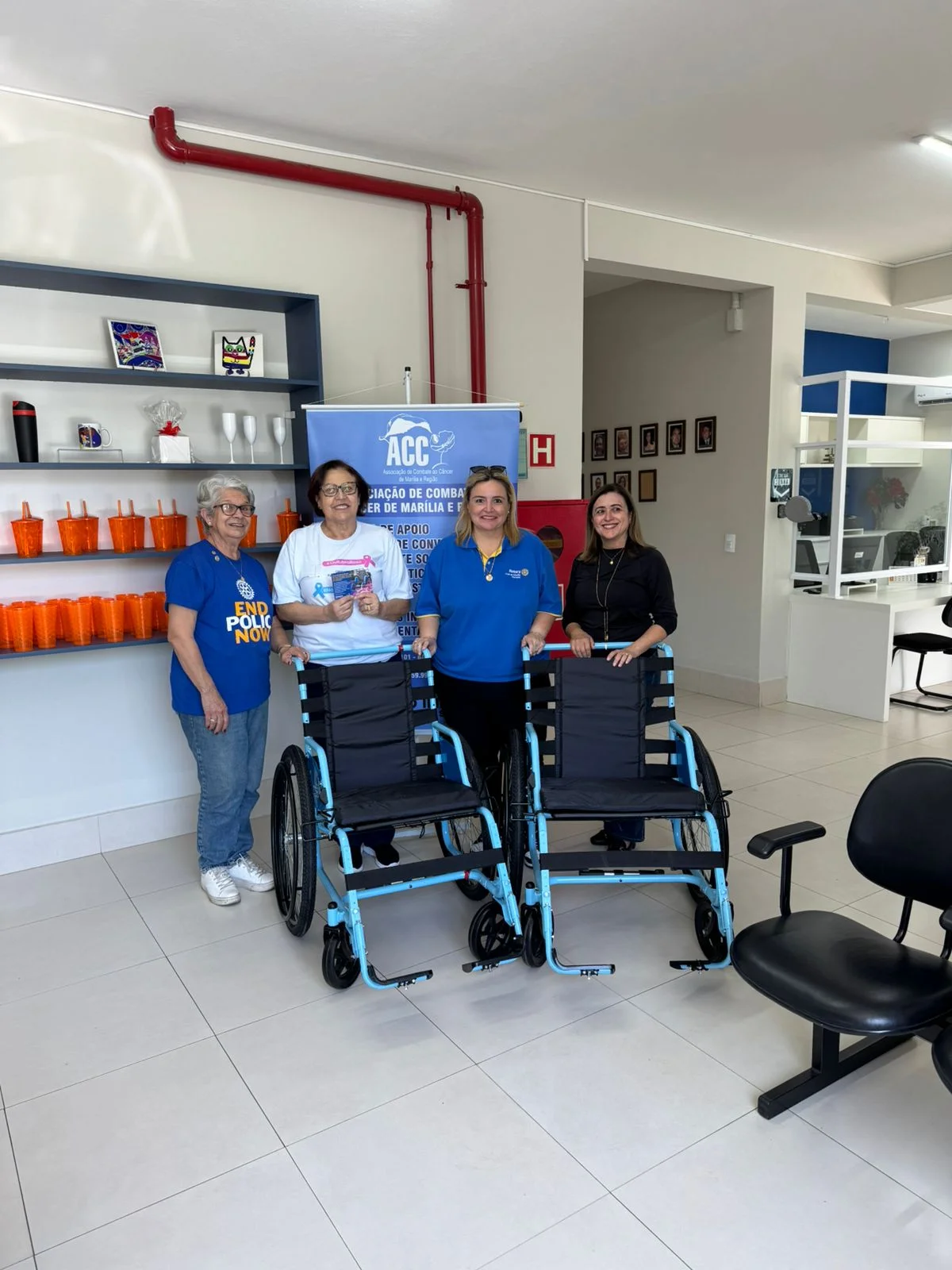 A ASSOCIAÇÃO DE COMBATE AO CÂNCER DE MARÍLIA E REGIÃO é uma referência na cidade de Marília, atendendo atualmente a 120 pessoas em situação de vulnerabilidade. Com a adição das cadeiras de rodas doadas pelo Rotary Club de Marília-Pioneiro, a instituição poderá oferecer um suporte ainda mais abrangente, facilitando a locomoção e proporcionando mais independência para aqueles que dependem de seus serviços.