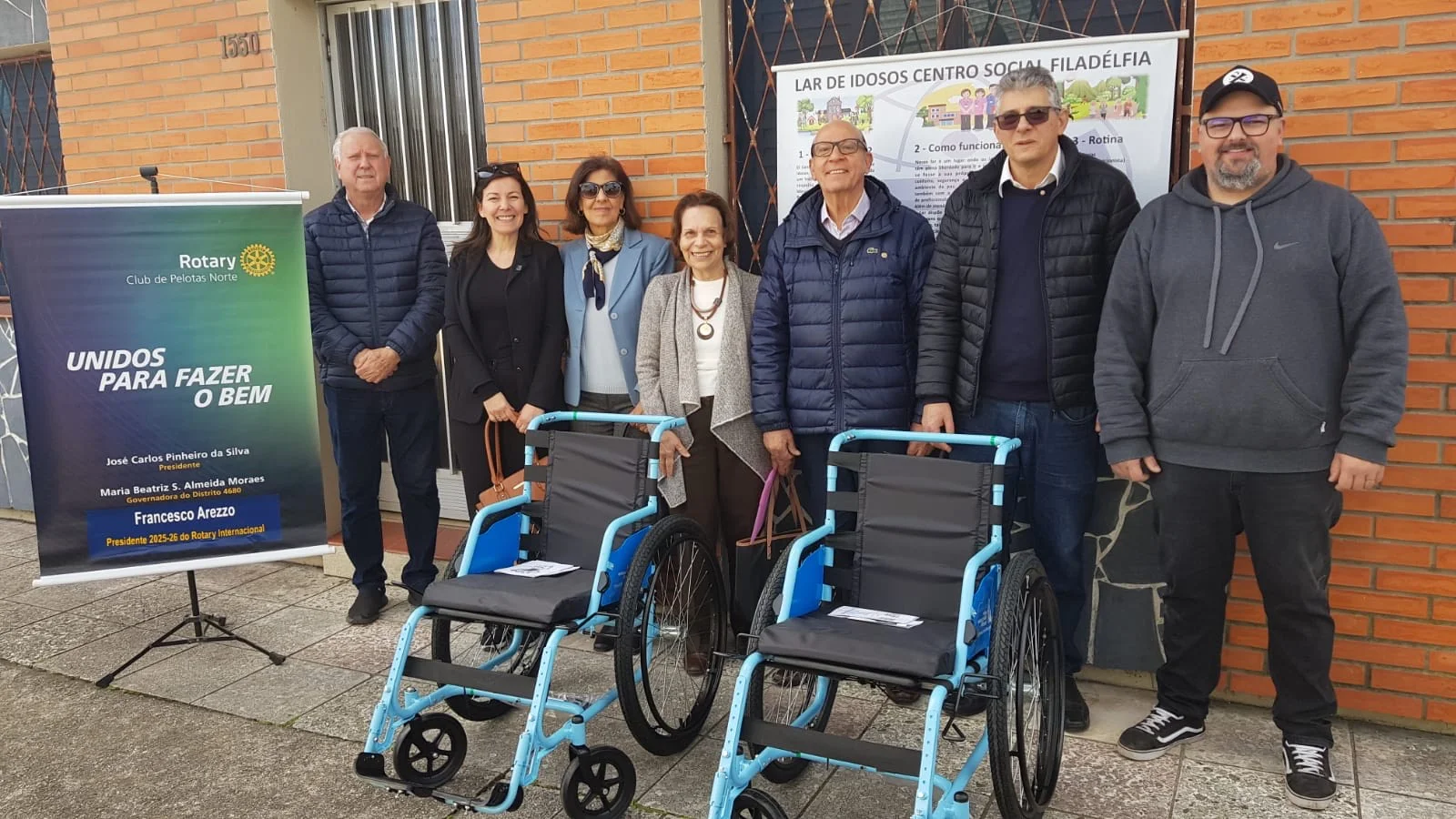 Ao todo, 2 cadeiras de rodas foram generosamente doadas pelo Rotary Club de Pelotas-Norte, com o objetivo de melhorar a qualidade de vida e promover inclusão para aqueles que mais precisam. Essas cadeiras de rodas serão um recurso valioso para a Centro Social Filadélfia, permitindo que eles atendam de forma mais abrangente e eficaz a comunidade que atendem.
