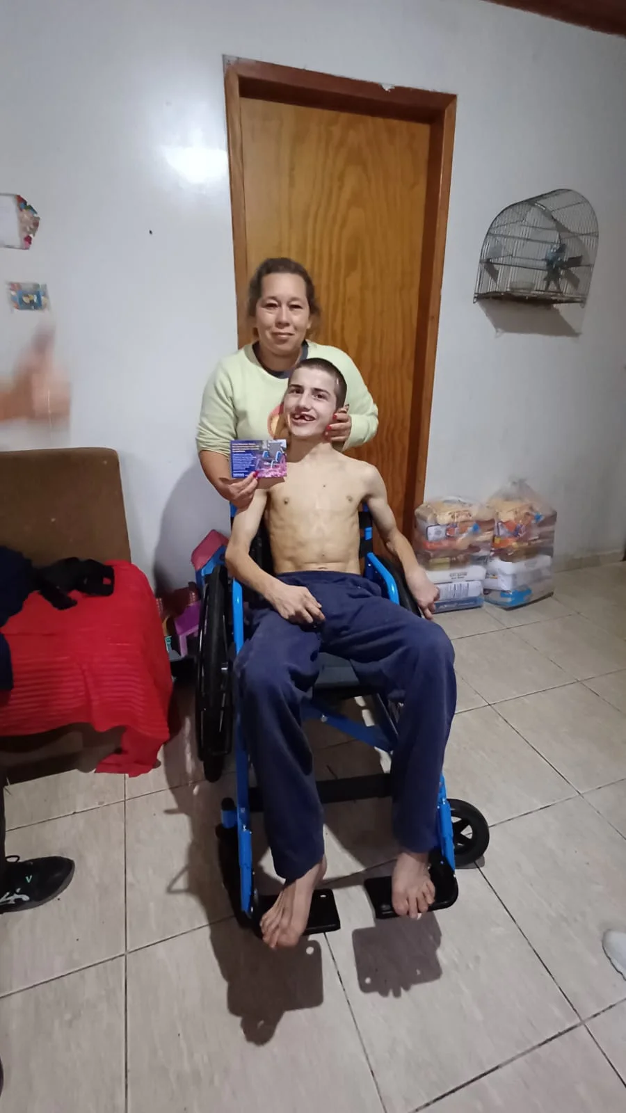 Everton compartilha seu lar com pessoas que o amam, incluindo mae e 2 irmas, que o apoiam e o cuidam com amor e dedicação. Essa nova cadeira de rodas trará um impacto positivo não apenas para Everton, mas para todos a sua volta, permitindo que eles compartilhem momentos preciosos juntos.